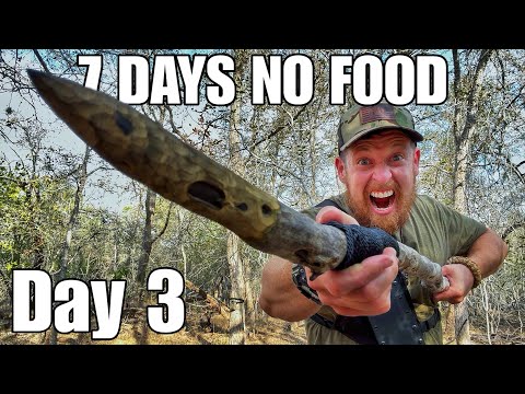 7 Day NO FOOD NO WATER Survival Challenge – Day 3 Primitive Spear Build